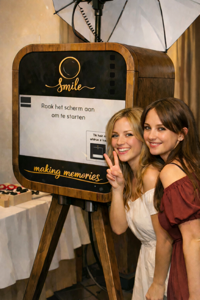 Onze photobooth maakt jullie bruiloft onvergetelijk. Gasten maken spontane foto’s met props en krijgen direct een afdruk als blijvende herinnering.